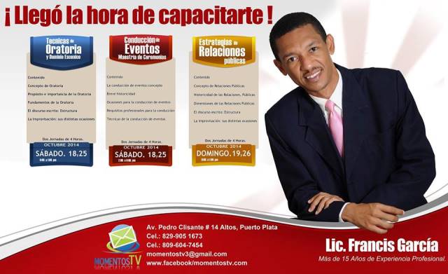 Esta capacitación tiene como coordinador docente al licenciado Francis García quien es un reputado profesional con más de 15 años de experiencia profesional y docente, además de su fecundo trabajo en los medios de comunicación de Puerto Plata.